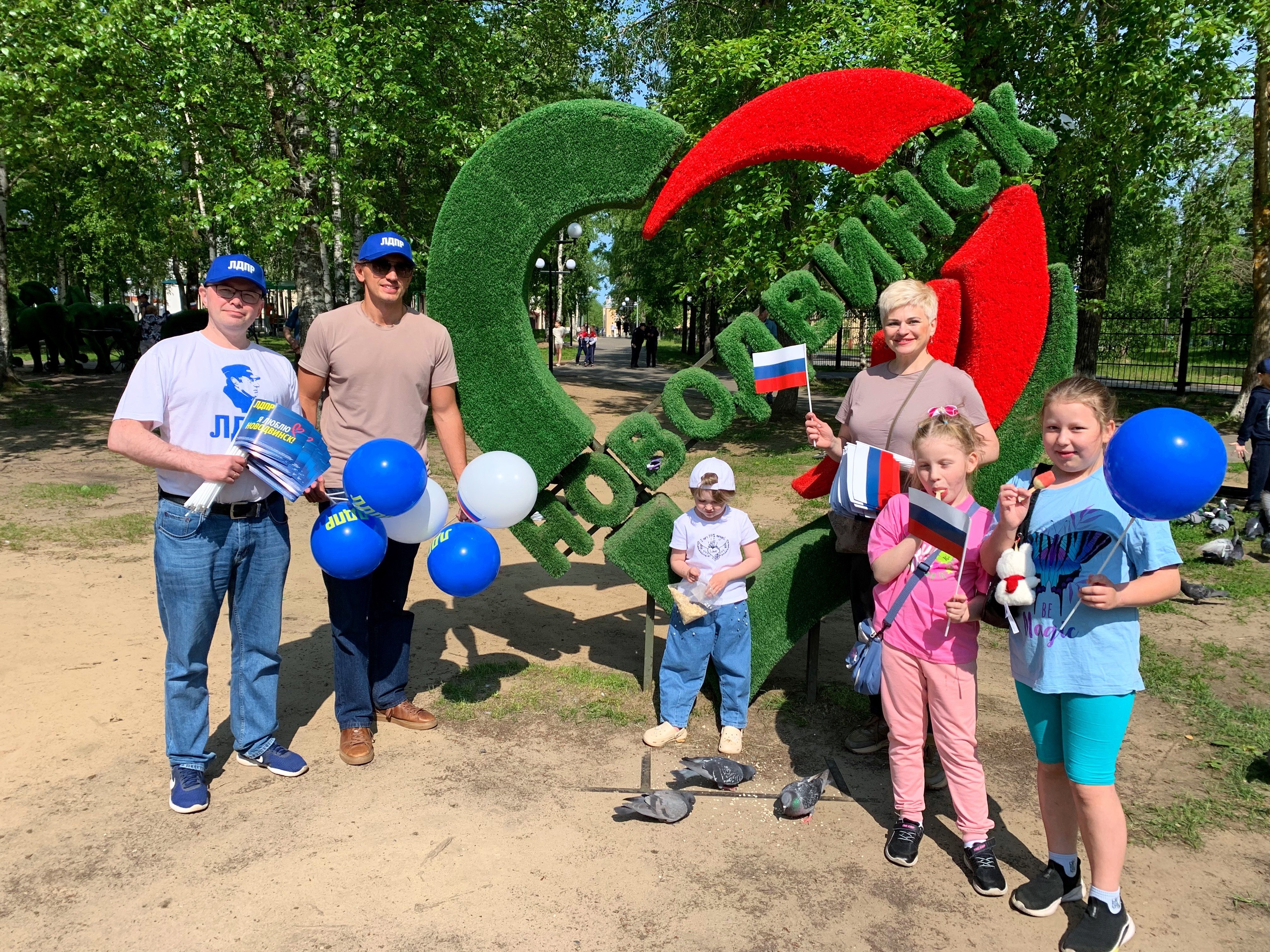 Яркие триколоры и воздушные шары сегодня наполнили улицы Новодвинска праздничной атмосферой! Активисты местного отделения ЛДПР – Татьяна Верюжская, Эдуард Киевский, Антон Якимов, Евгений Торопов и Артём Канаев – вышли к горожанам, чтобы лично поздравить всех с Днем России!